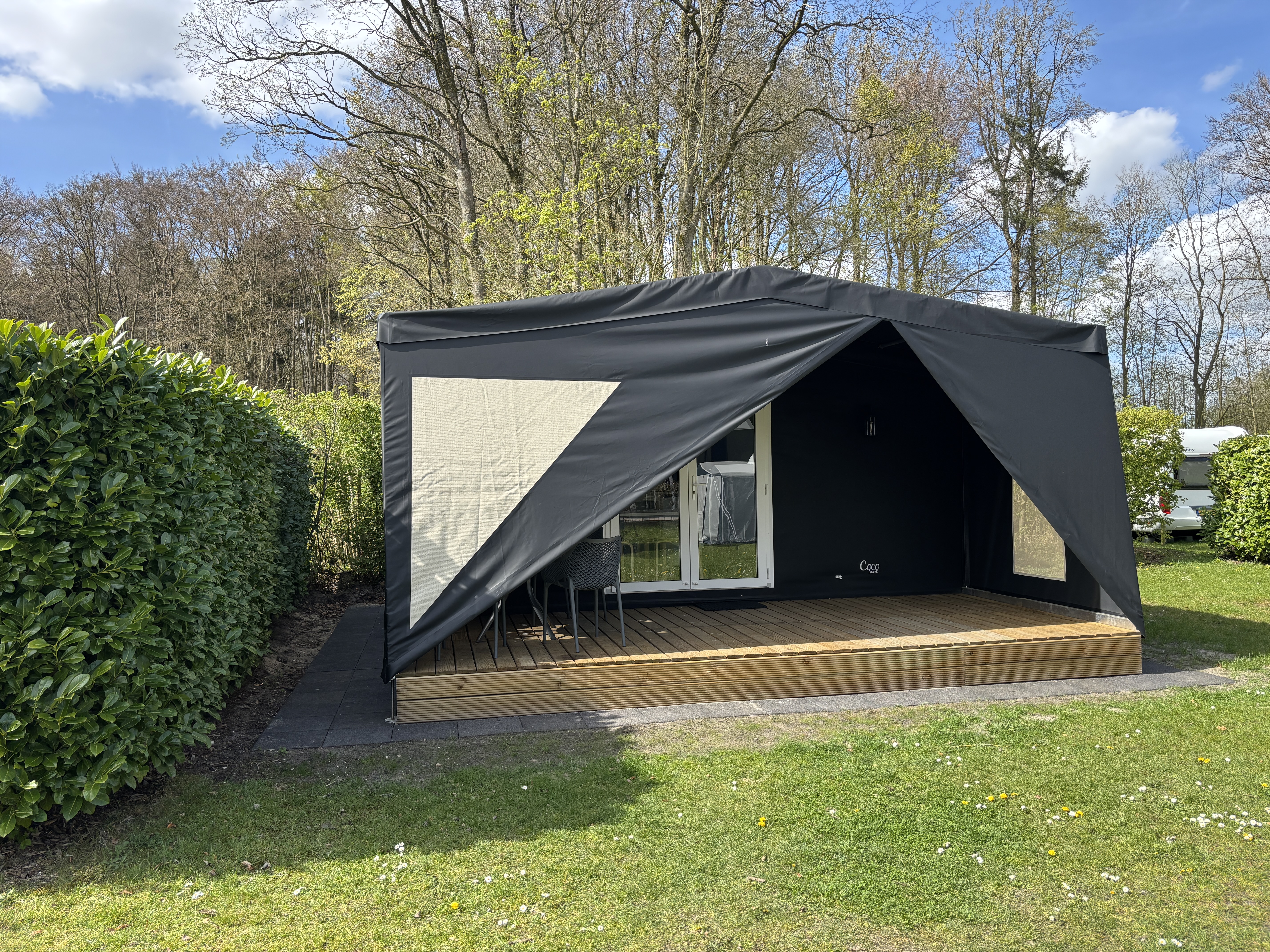 De Coco Sweet is een sfeervolle, ingerichte verhuurtent voor een ontspannen vakantie met maximaal vier personen. Je geniet van het buitenleven, met nét dat beetje extra comfort. Dankzij de praktische inrichting heb je alles bij de hand voor een onbezorgd verblijf op Recreatiepark De Voorst.