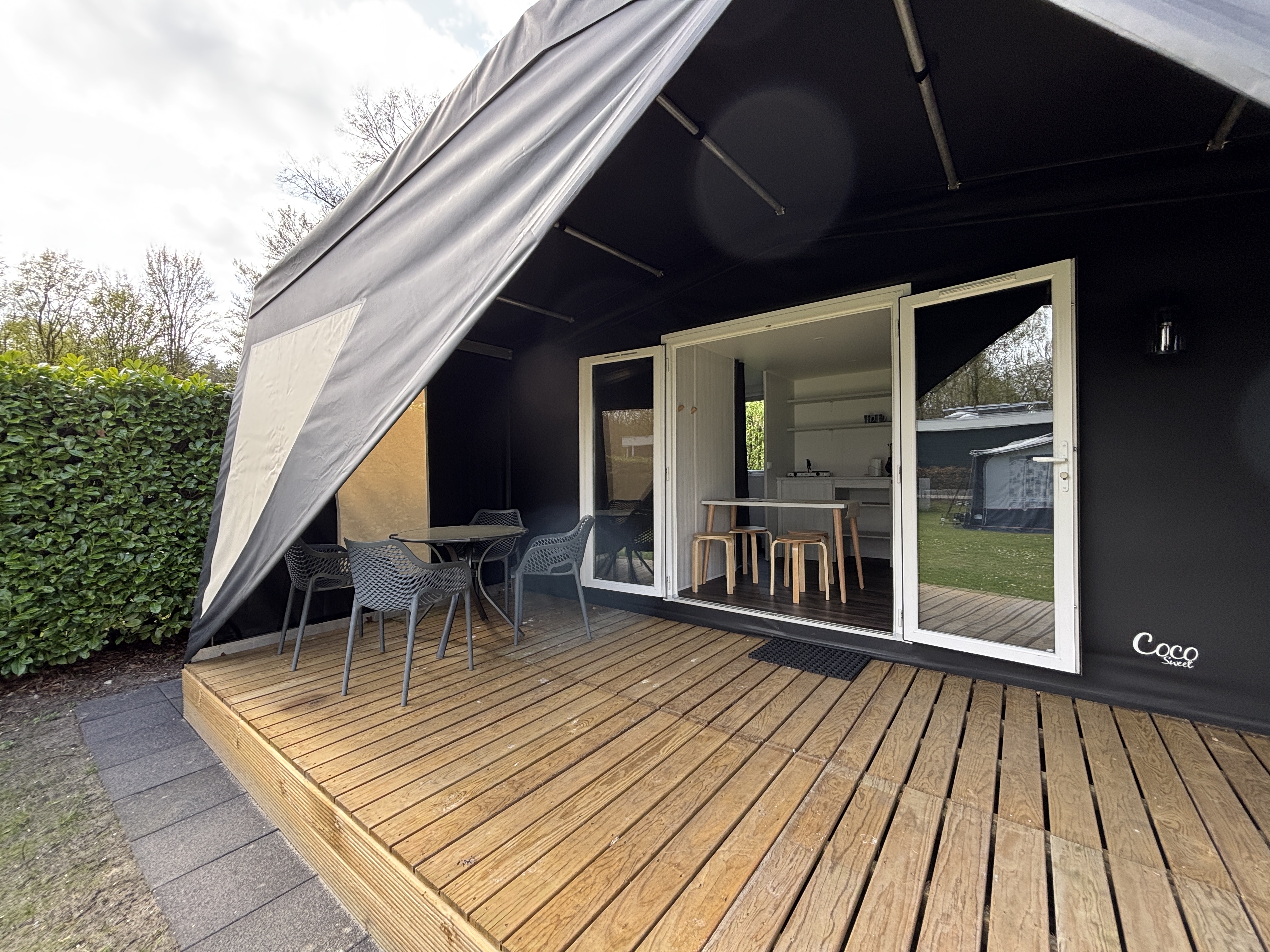 De Coco Sweet is een sfeervolle, ingerichte verhuurtent voor een ontspannen vakantie met maximaal vier personen. Je geniet van het buitenleven, met nét dat beetje extra comfort. Dankzij de praktische inrichting heb je alles bij de hand voor een onbezorgd verblijf op Recreatiepark De Voorst.